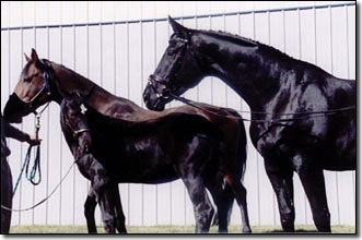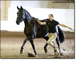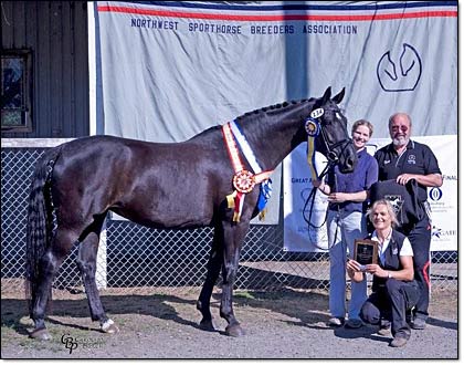 Hochkarat and her 2 year old son Rabenschwarz (who just received his stallion license with RPSI) at the USDF Northwest Finals. She was reserve champion mare and her son won the colt championship. Rabenschwarz is sired by Radikal.