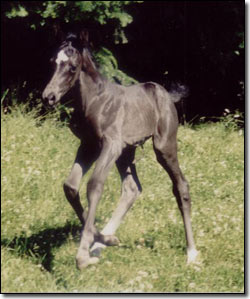 Hochkarat's first foal by Wolkenzauber (and our first successful embryo transfer foal), is the mirror image of her dam. She has her affectionate and confident temperament. We love her!